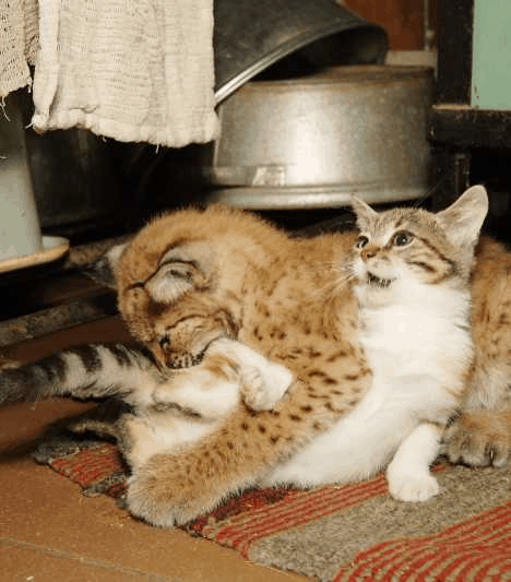Em 2007, uma chita perdida invadiu o zoológico local de São Petersburgo. Sem saber exatamente para onde ir primeiro, Calico viu um lince andando em uma gaiola. O gato de rua entrou no recinto sem pensar duas vezes, provavelmente esperando marcar algumas sobras. Agora, com o lince sendo um gato selvagem, é bastante normal para muitos pensarem que essa história terminou mal. No entanto, assim que o gato entrou, o lince cumprimentou seu novo amigo e começou a lamber!